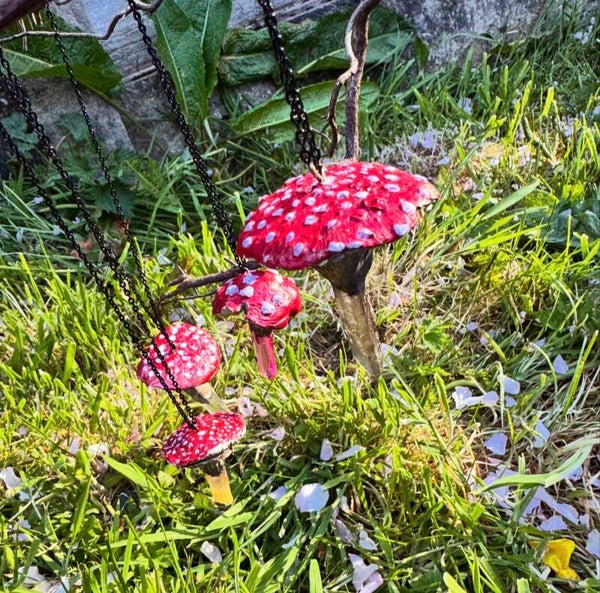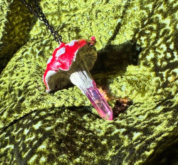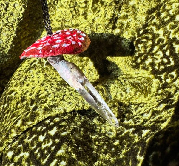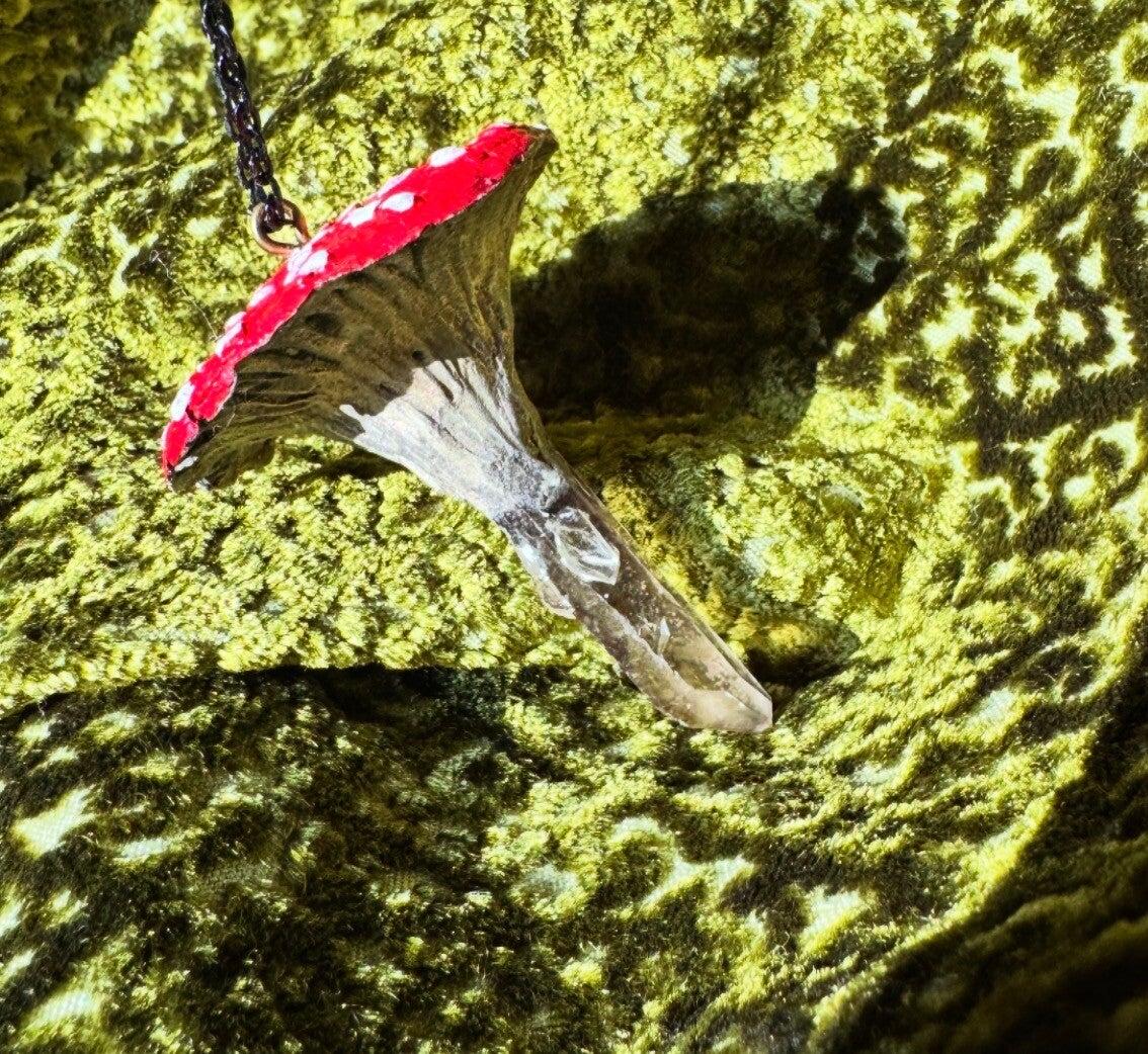 Individual hand made mushrooms by a Hedge witch. Perfect as a necklace, pendulum, magical charm or sun catcher.