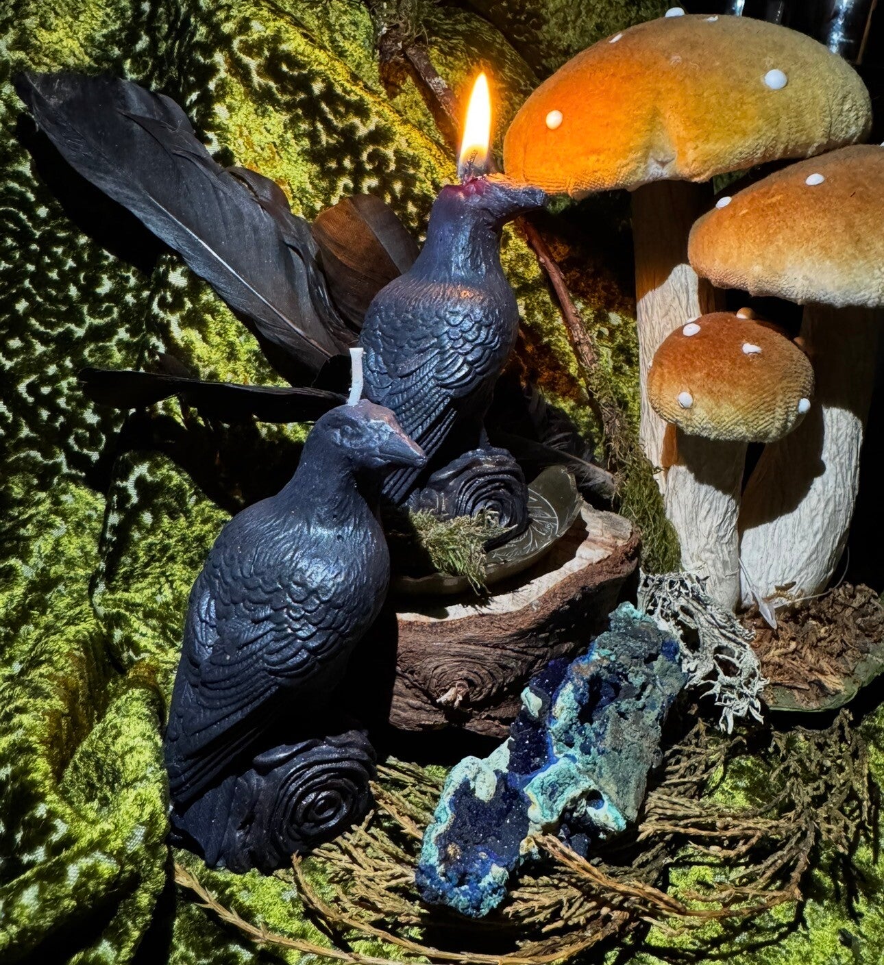 Hand-poured crow candle . A symbol of mystery & wisdom, a crow of your own to bridge the veil.