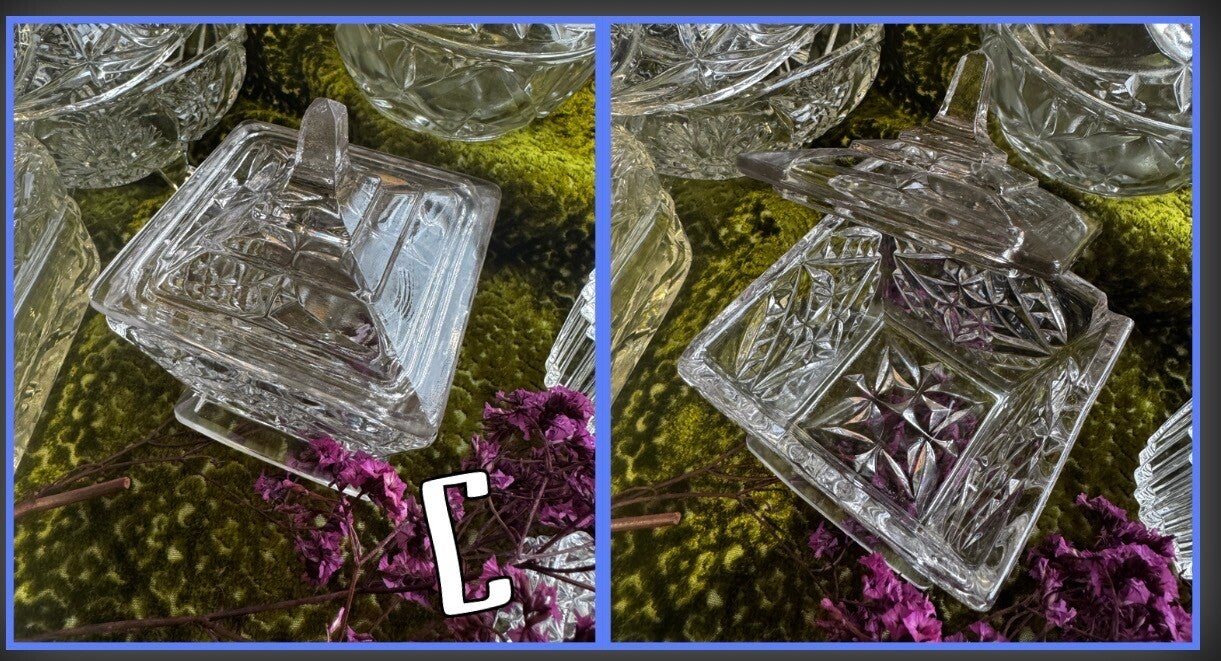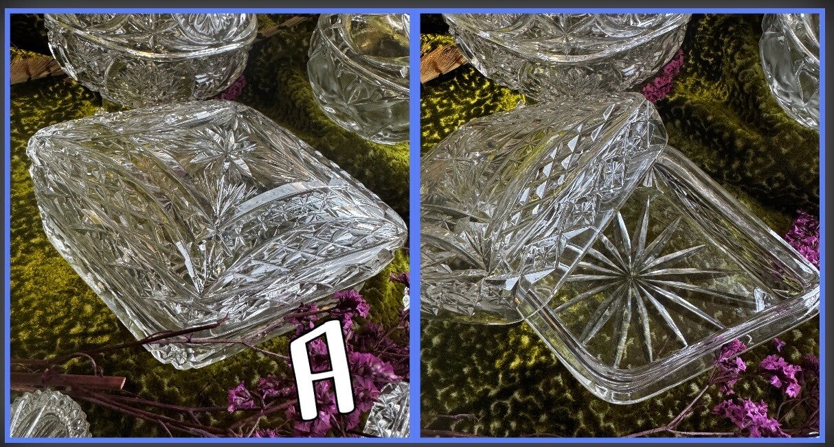 Add a touch of mystique to your sacred space with these vintage cut glass dishes, perfect for holding crystals, herbs, or potions. Each piece is unique, imbued with the whispers of the past. Ideal for witches, healers, and collectors.